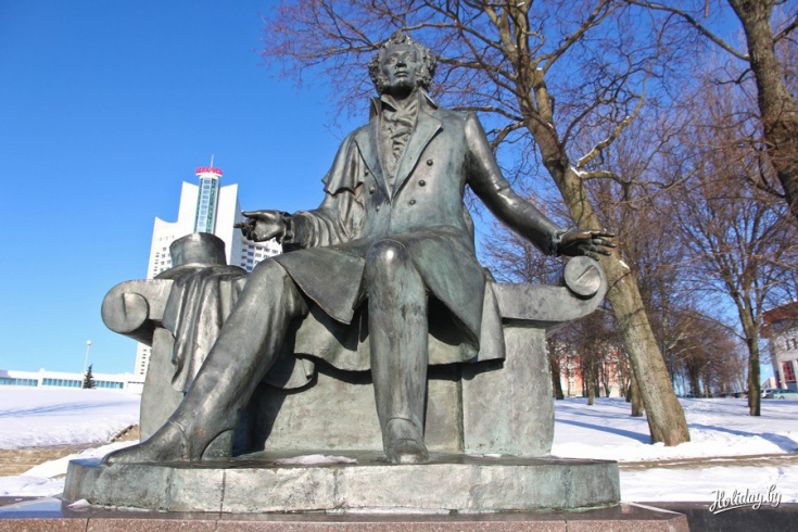 Памятник Александра ПушкинаКак утверждают студенты, если перед экзаменами поболтать с Пушкиным, который взирает на город возле гостиницы «Беларусь», обязательно будут хорошие оценки. Экзамен этот обязательно должен быть по филологическому предмету. Считается, что Пушкин в точных науках не помогает.