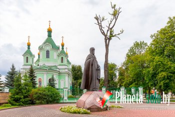 Свято-Сименовский храм расположился у возвышенности. Также и отсюда можно полюбоваться панорамой города. Сама церквушка строилась в 1914 году. До этого тут был храм деревянный. Уже в конце века девятнадцатого он обветшал, и местный настоятель по приезду в Беловежскую пущу Николая второго сумел добиться у императора аудиенции, и в руках с иконой просил помощи в восстановлении храма. Деньги были